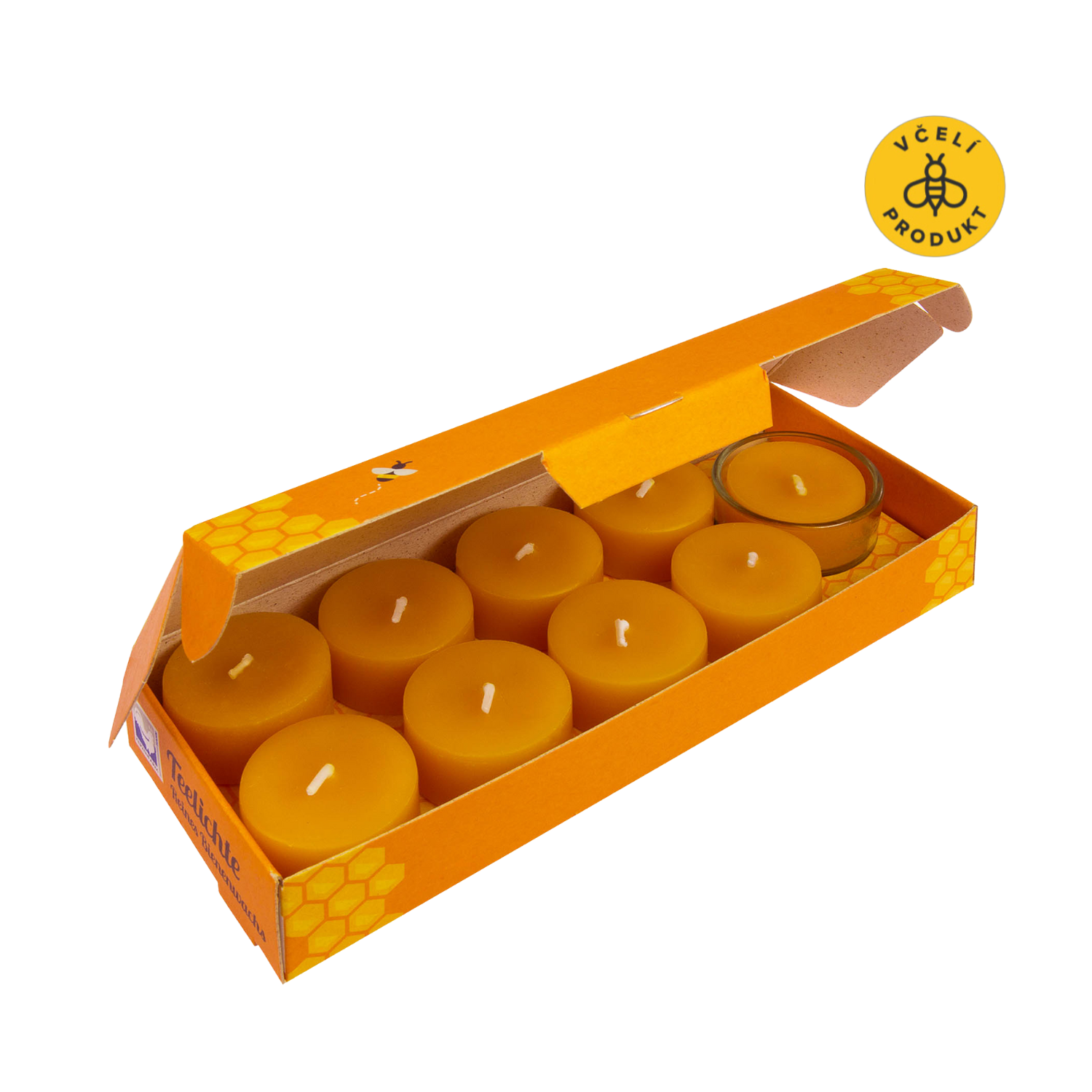 Kerzenfarm Sada čajových svíček ze včelího vosku (9 ks + stojánek) – bezobalové – ruční výroba✅ Kerzenfarm