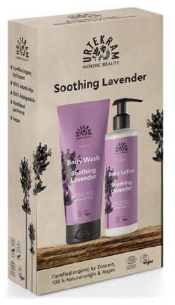 Dopřejte sobě i svým blízkým dokonalý dárek v podobě této sady, která vám poskytne nutnou dávku relaxace a okouzlí vás příjemnou a uklidňující vůní levandule. Skrývá v sobě dva 100% přírodní produkty. Tělové mléko pohladí každého, kdo potřebuje vyskočit z víru povinností, zpomalit a vydechnout. Úžasná bylinná vůně éteráčků z levandule, heřmánku a rozmarýnu zklidní roztěkanou mysl a odpočinkový mód naordinuje i tělu. V pečlivě sestavené receptuře nechybí vyživující jojobový a meruňkový olej ani bambucké máslo. Výtažek z listů aloe vera a kyselina hyaluronová pak pokožku skvěle hydratují. Sprchový gel vás teleportuje do rozkvetlých provensálských luk. Pokožku u toho opečuje éteráčky a výtažky z levandule lékařské, rozmarýnu, eukalyptu a heřmánku pravého. Hloubkovou hydrataci dodá kůži aloe vera, regeneraci pak zajistí blahodárná kyselina hyaluronová. Sada se pyšní certifikáty Ecocert Cosmos Organic a Vegan Society. Firma Urtekram byla založena v Dánsku už v roce 1972, kdy bio bylo ještě v plenkách i ve světě. Dnes se jedná o největšího výrobce a prodejce bio produktů ve Skandinávii. Všechny jejich produkty jsou 100% z přírodních surovin, mají přísnou certifikaci EcoCert Greenlife, která hlídá kvalitu surovin, jejich původ a čistotu – a pro vás je garancí té nejvyšší kvality. Všechny produkty jsou certifikované jako BIO, neobsahují žádné potenciálně problematické látky jako jsou parabeny, syntetická barviva či silikon a nenajdete v nich ani živočišné složky.