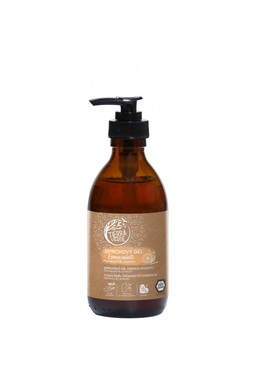 - Sprchový gel Tierra Verde Esence radosti má osvěžující vůni pomeranče a levandule